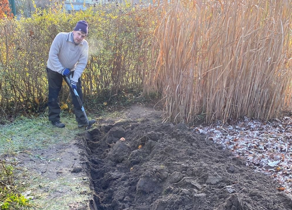 In the first autumn and winter, the stand was cleared in stages and intensive soil preparation was carried out. In addition to the organic waste that accumulated, autumn leaves, horse manure and clay were also incorporated. We built deadwood hedges from larger branches and twigs.